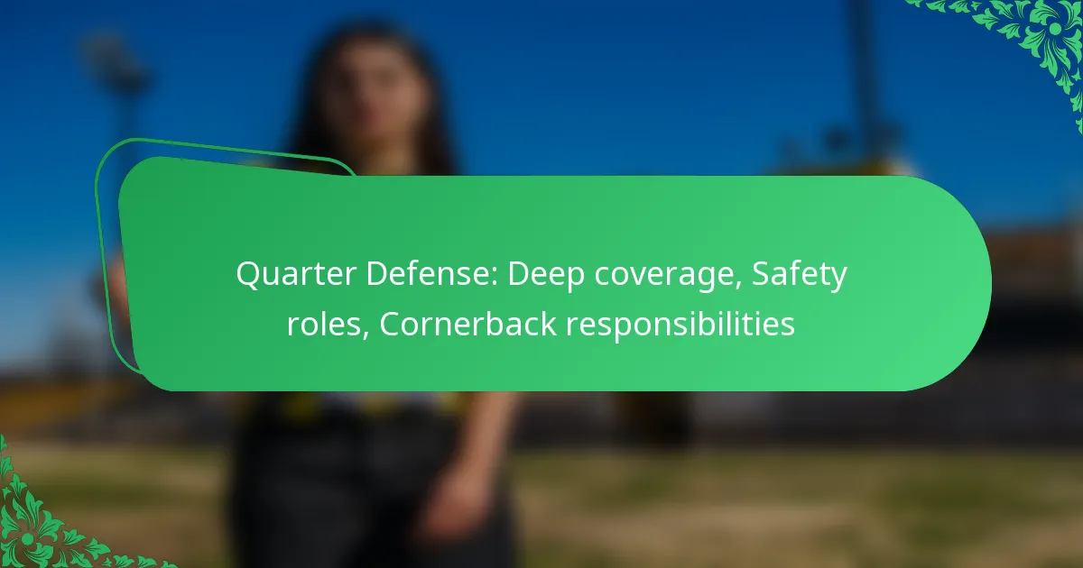 The quarter defense is a strategic formation in American football that emphasizes deep coverage to counter passing plays effectively. By utilizing four defensive backs, this formation allows for flexible coverage schemes while minimizing the risk of significant yardage gains. Safeties and cornerbacks work collaboratively to cover their zones, ensuring that both pass and run threats are adequately addressed.